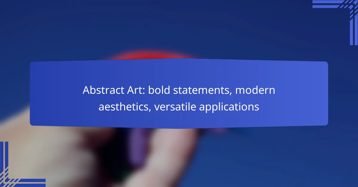 Abstract art serves as a powerful medium for bold statements within modern aesthetics, inviting viewers to explore emotional depth and personal interpretation. Its versatility allows it to enhance various environments, from homes to corporate spaces, making it a popular choice in interior design and branding. By thoughtfully selecting abstract pieces, one can significantly influence the mood and atmosphere of any setting.