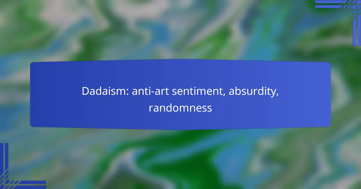 Dadaism is an avant-garde movement that emerged in the early 20th century as a reaction to the chaos of World War I, fundamentally challenging traditional artistic values. Emphasizing absurdity, randomness, and anti-art sentiment, Dada artists like Marcel Duchamp and Hannah Höch sought to redefine creativity by embracing spontaneity and nonsensical forms of expression. Through innovative techniques such as collage and assemblage, Dadaism invites viewers to reconsider the very nature of art and its purpose.