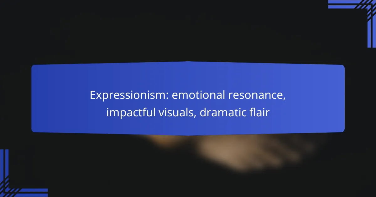 Expressionism is an art movement that emphasizes emotional resonance, prioritizing subjective feelings over realistic representation. Through bold visuals and intense colors, it allows viewers to connect deeply with the artwork, often conveyed through exaggerated forms and dramatic flair. Key figures like Edvard Munch and Wassily Kandinsky exemplify this approach, creating pieces that evoke powerful emotions and narratives.