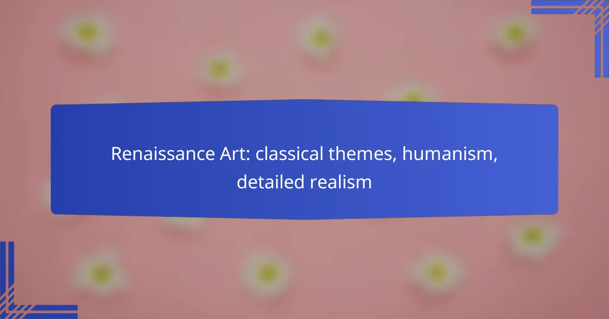 Renaissance art revived classical themes from ancient Greece and Rome, showcasing mythology, history, and human figures in dynamic poses. Artists like Raphael and Michelangelo drew inspiration from classical sculptures and literature, integrating these elements into their work to convey a sense of beauty and proportion.