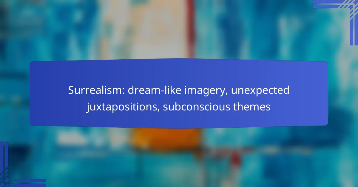 Dream-like imagery in surrealism often features bizarre, fantastical scenes that evoke the illogical nature of dreams. Artists utilize vivid colors, distorted forms, and unexpected settings to transport viewers into an alternate reality. For example, Salvador Dalí’s melting clocks in “The Persistence of Memory” illustrate the fluidity of time as experienced in dreams.