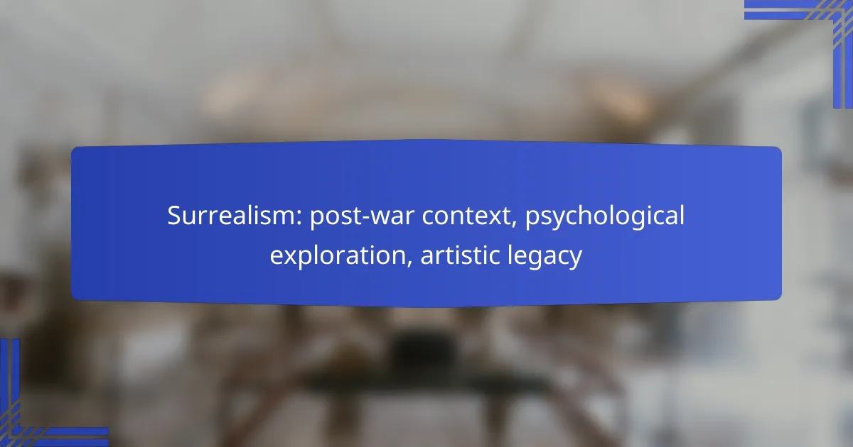Surrealism emerged as a powerful artistic movement in the post-war context, deeply influenced by the trauma and uncertainty following World War II. This period prompted artists to explore psychological themes, delving into the subconscious and the complexities of human emotions, as they sought to express the irrational aspects of thought and experience. The legacy of Surrealism endures in contemporary art, inspiring new generations to challenge perceptions of reality through dream-like imagery and psychological exploration.